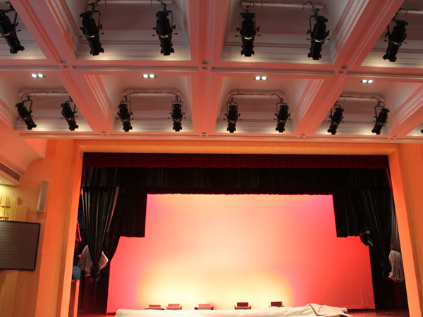 舞臺(tái)機(jī)械方面配置了景幕吊桿,燈光吊桿,側(cè)光吊籠,大幕機(jī)、二幕機(jī)等。